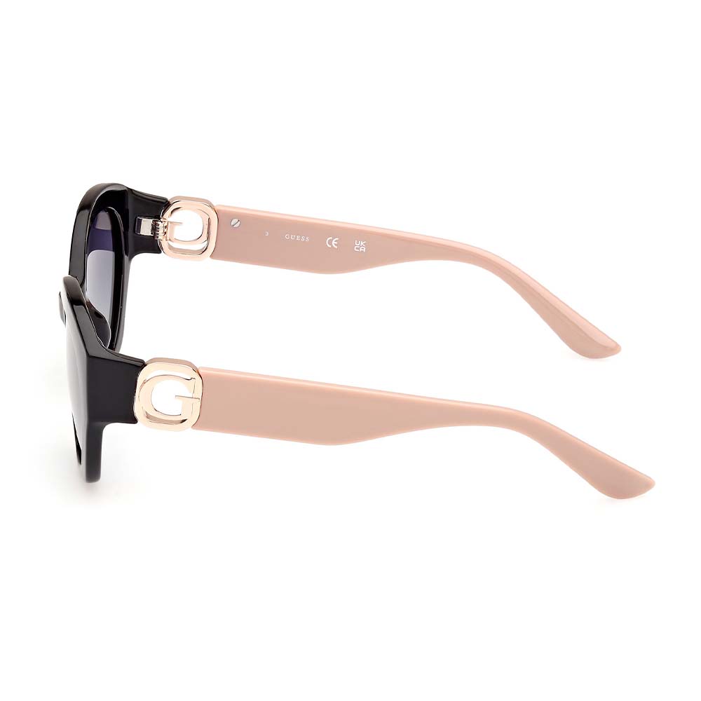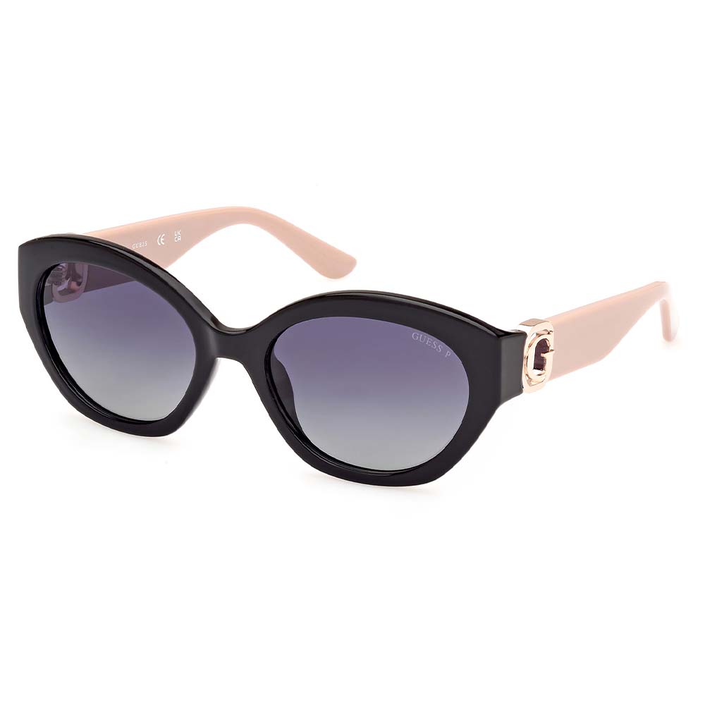 Τα γυαλιά ηλίου Guess με την υπογραφή του γνωστού οίκου Guess διαθέτουν πολωτικούς γκρι ντεγκραντε φακούς 100% απορροφητικούς στην υπεριώδη ακτινοβολία. Το συγκεκριμένο μοντέλο είναι κοκάλινο σε χρώμα μαύρο ενώ οι βραχιωνες είναι σε χρώμα nude ροζ και έχει το αρχικο της Guess με ροζ gold.