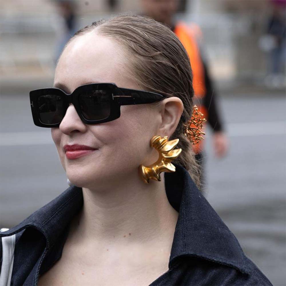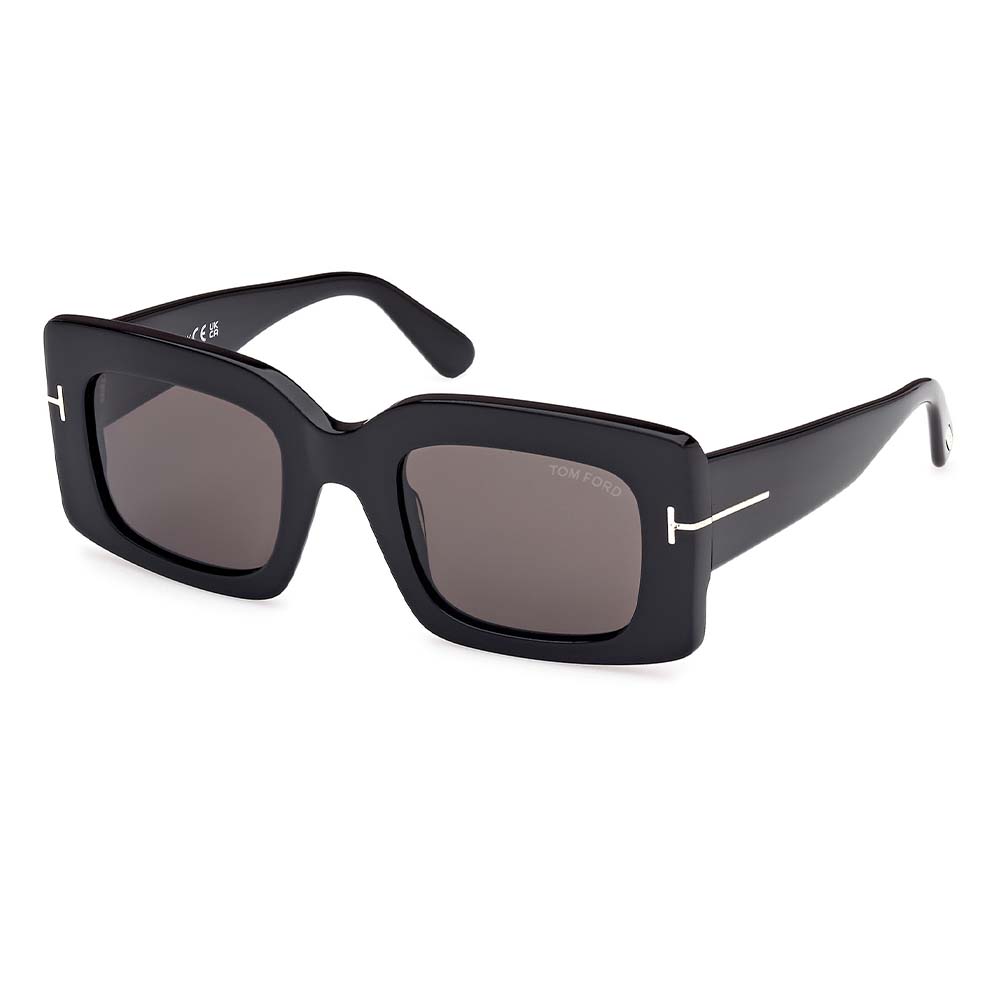 Τα γυαλιά ηλίου Tom Ford με την υπογραφή του γνωστού οίκου Tom Ford αποτελούν ένα διαχρονικό ζευγάρι γυαλιών ηλίου που διαθέτουν φακούς 100 % απορροφητικούς στην υπεριώδη ακτινοβολία. Το συγκεκριμένο μοντέλο είναι κοκάλινο σε σχήμα μοντέρνο ορθογώνιο και χρώμα μαύρο. Οι βραχίονές του διακοσμούνται από το λογότυπο ‘Τ’. Οι φακοί είναι σκουρο γκρι κατηγορίας 3 και διαθέτουν έσω multi.